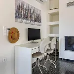 Vila Rafia Loft With Nice Garden Right By The Beach Loutráki je umístěna 4 km od Korintská šíje, je 1-ložnicové ubytování s terasou. Pohovka, pracovní stůl a přístroj na přípravu kávy/čaje jsou součástí pokojů této nemovitosti.